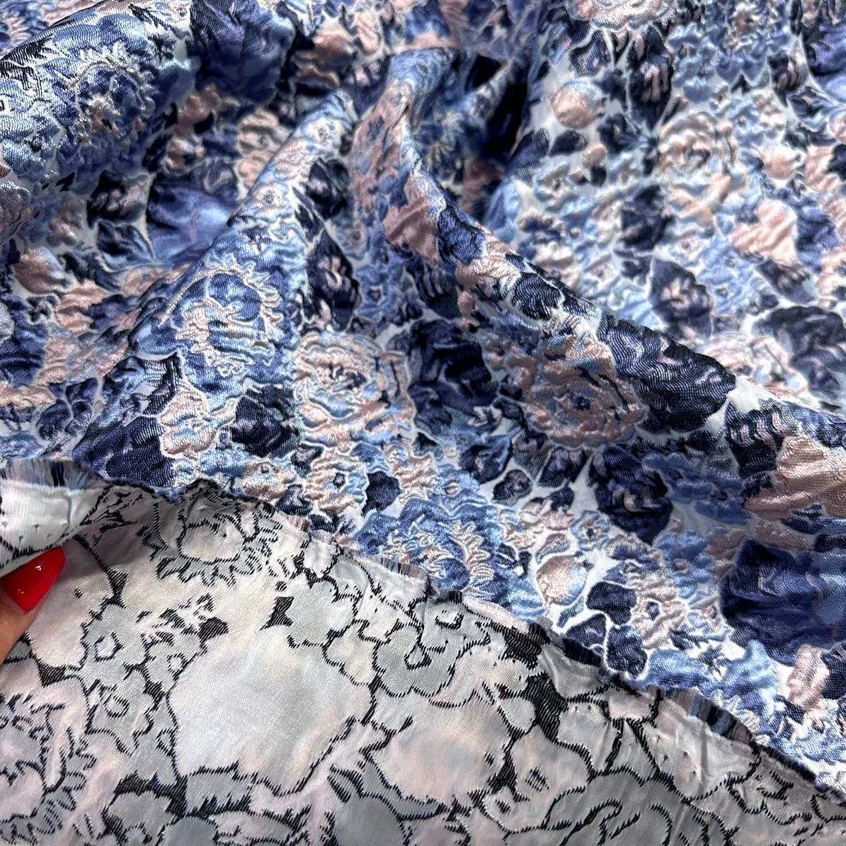 Жаккард голубой цветок